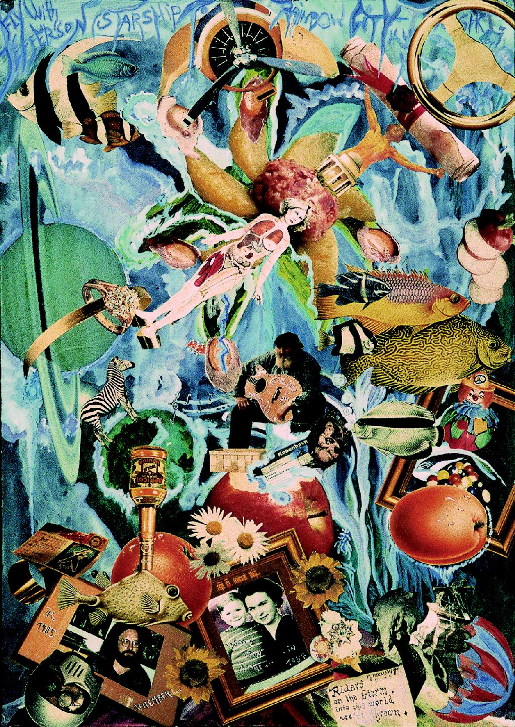05 Collage - 1985 48 x 68 cm "Remember - Once upon a time ... in 1957" "Riders on the storm, into this world we´re thrown" J. Morrison